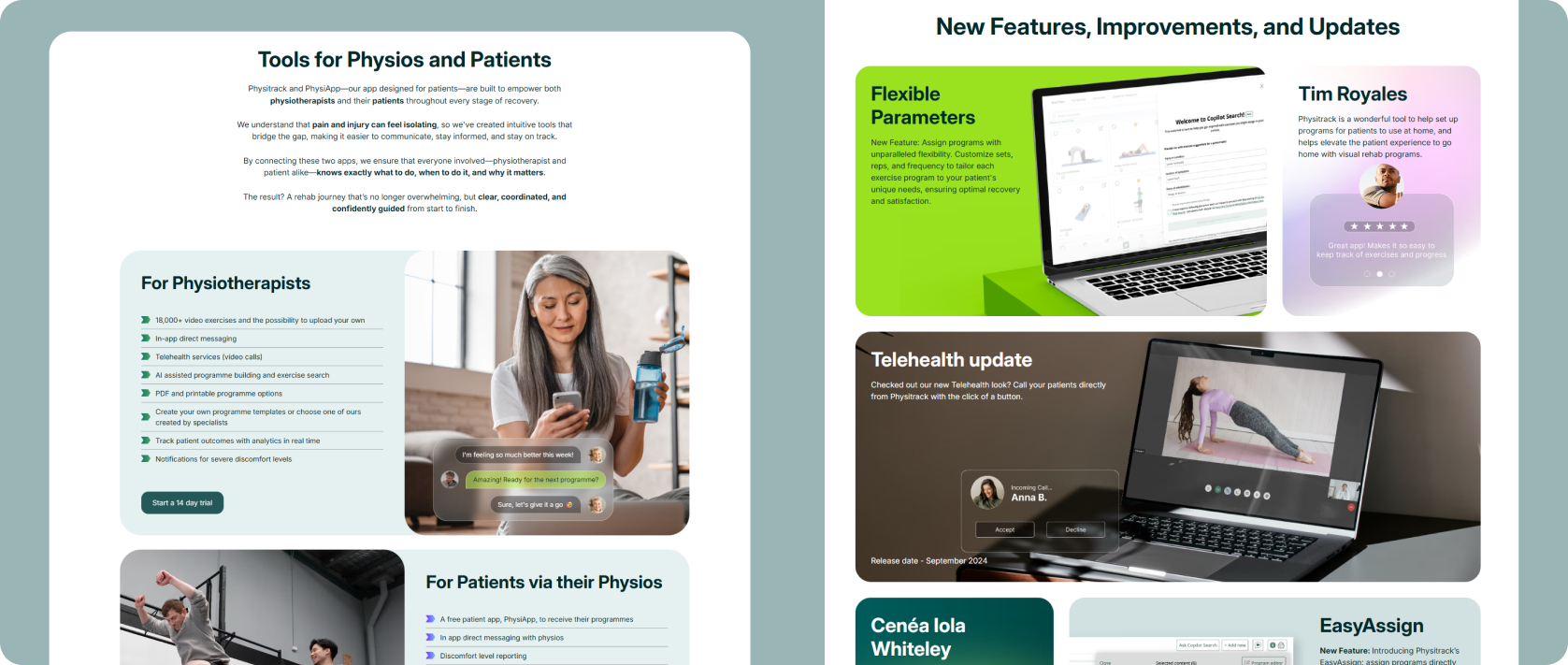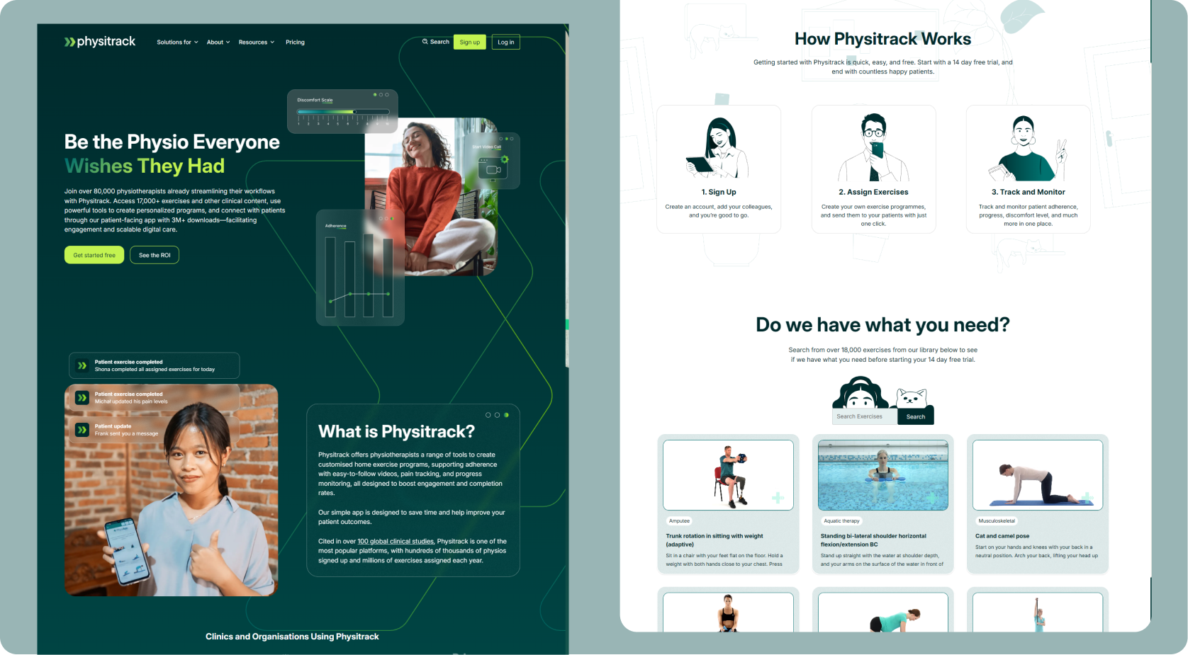 Physitrack is a global leader in the health-tech space, providing practitioners with cutting-edge software for remote patient engagement and exercise prescription. Their goal is simple. They want to help clinicians build better relationships with their patients and achieve better health outcomes. Their marketing website is the first step in that journey, aiming to bring physiotherapists and clinical teams into their ecosystem.
